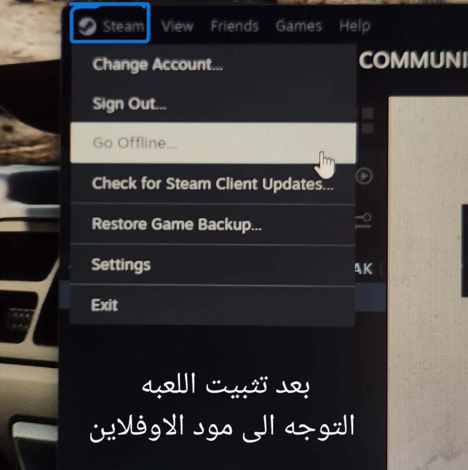 بعد تنزيل اللعبه بشكل كامل تقوم بتشغيلها اونلاين اول مره وبعدها اقفلها وطبق الشرح